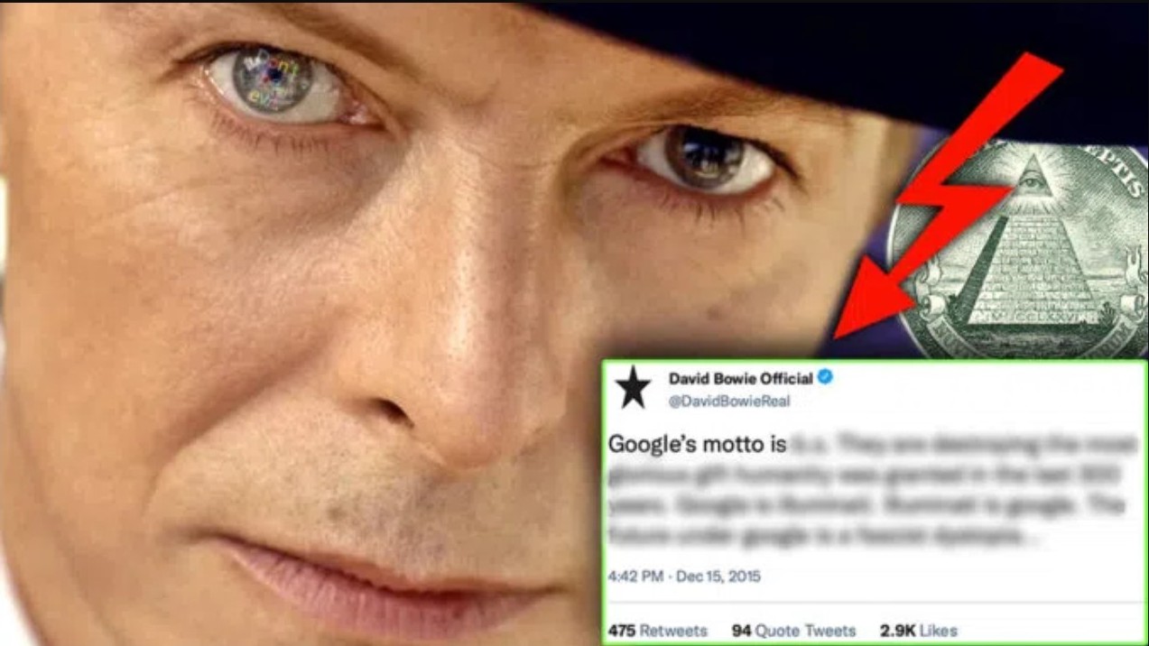 Bowie psal pod svým pseudonymem „námořník“ a prozradil, že „Google jsou Illuminati“ a varoval, že pokud Googlu dovolíme provozovat internet a kontrolovat tok všech informací, elity promění společnost ve „fašistickou dystopii“.