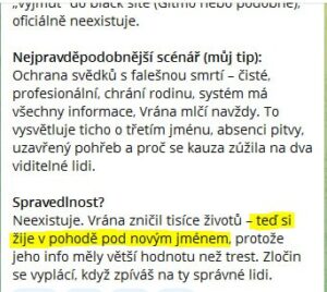 Proč by to mohl být Vrána jako třetí?Pokud byl Vrána zadržen v předchozích hodinách/dnech (třeba už 22. 12. večer), pak jeho „náhlé úmrtí“ ve vazbě nebo krátce po propuštění by vysvětlovalo, proč se o něm nikdy nezmínili jménem.